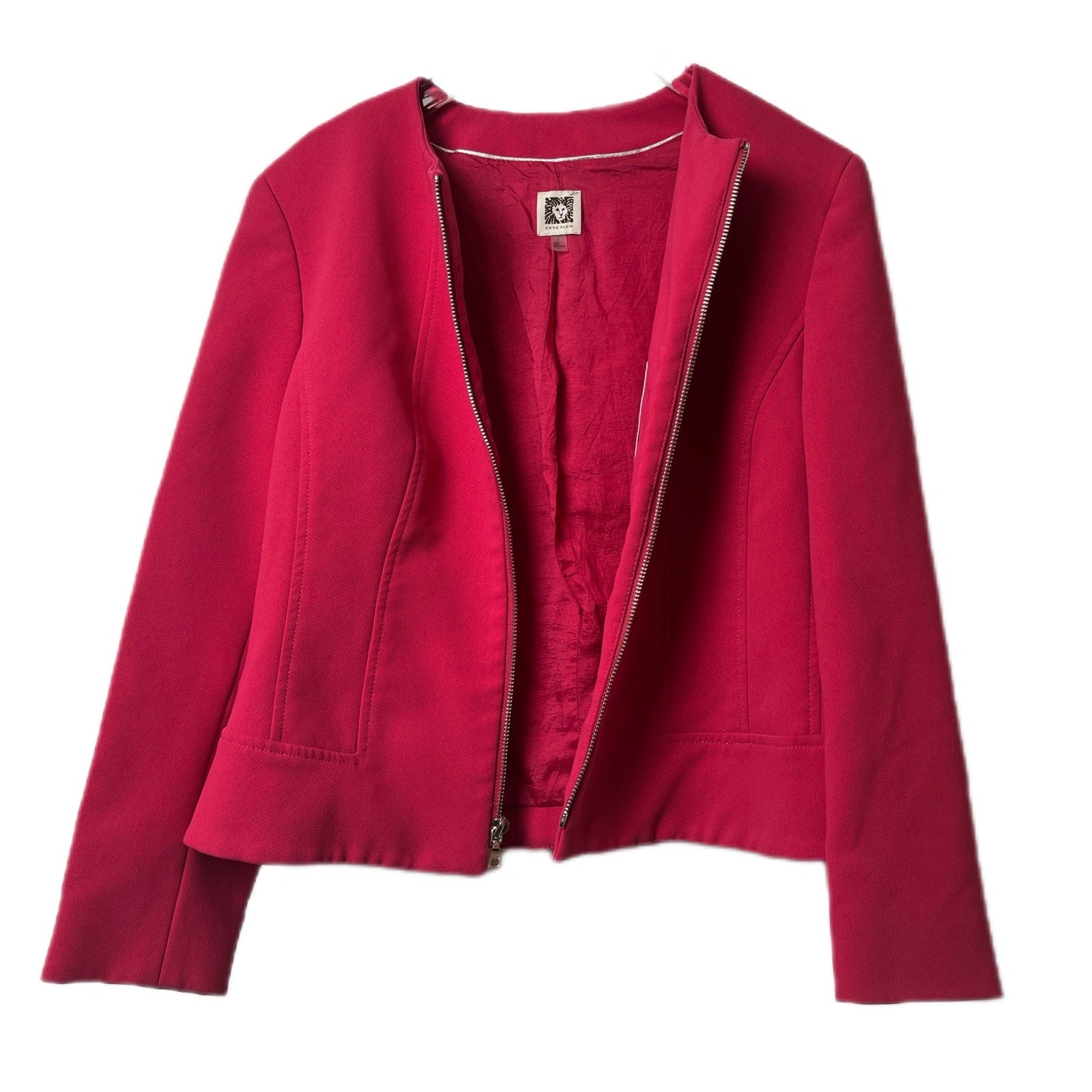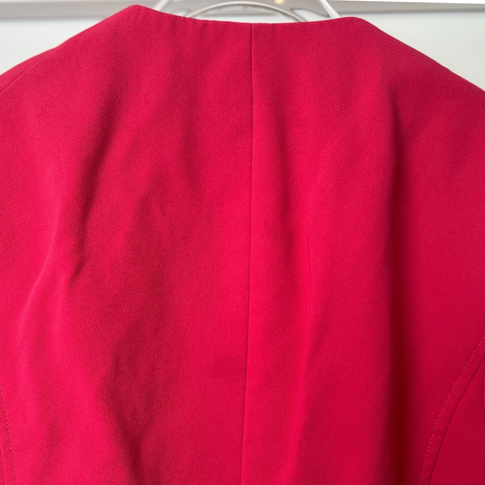 Very gently pre-loved jacket in excellent condition. Gorgeous fuschia color. Fits more like a size 8. Slightly short at the sleeves. Model is typically a size 8, 5'4" tall, 36" bust.
