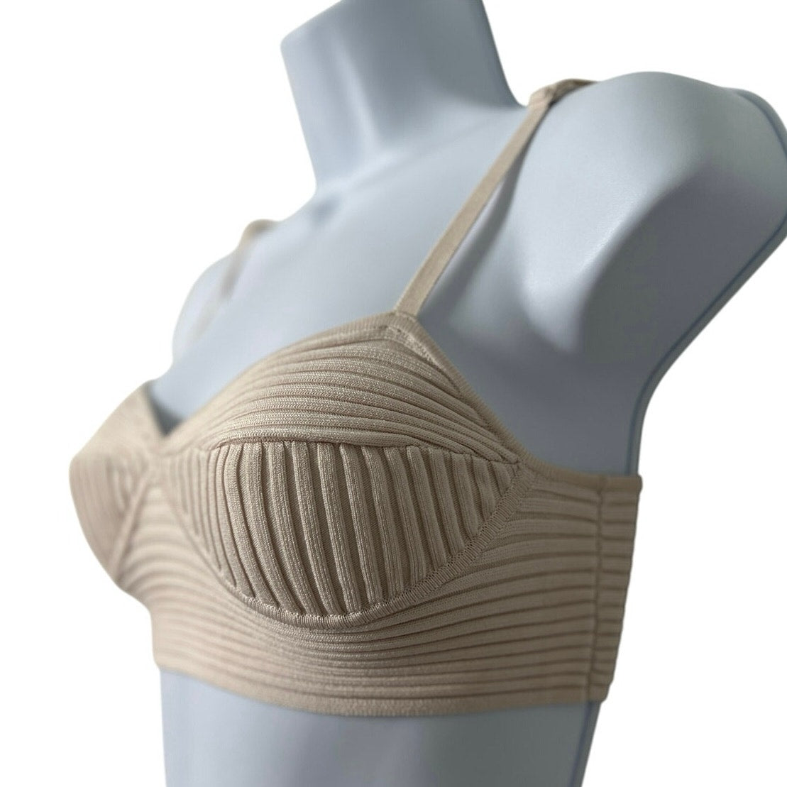 Jonathan Simkhai Ribbed Stretch Bustier Crop Top S Beige/Cream