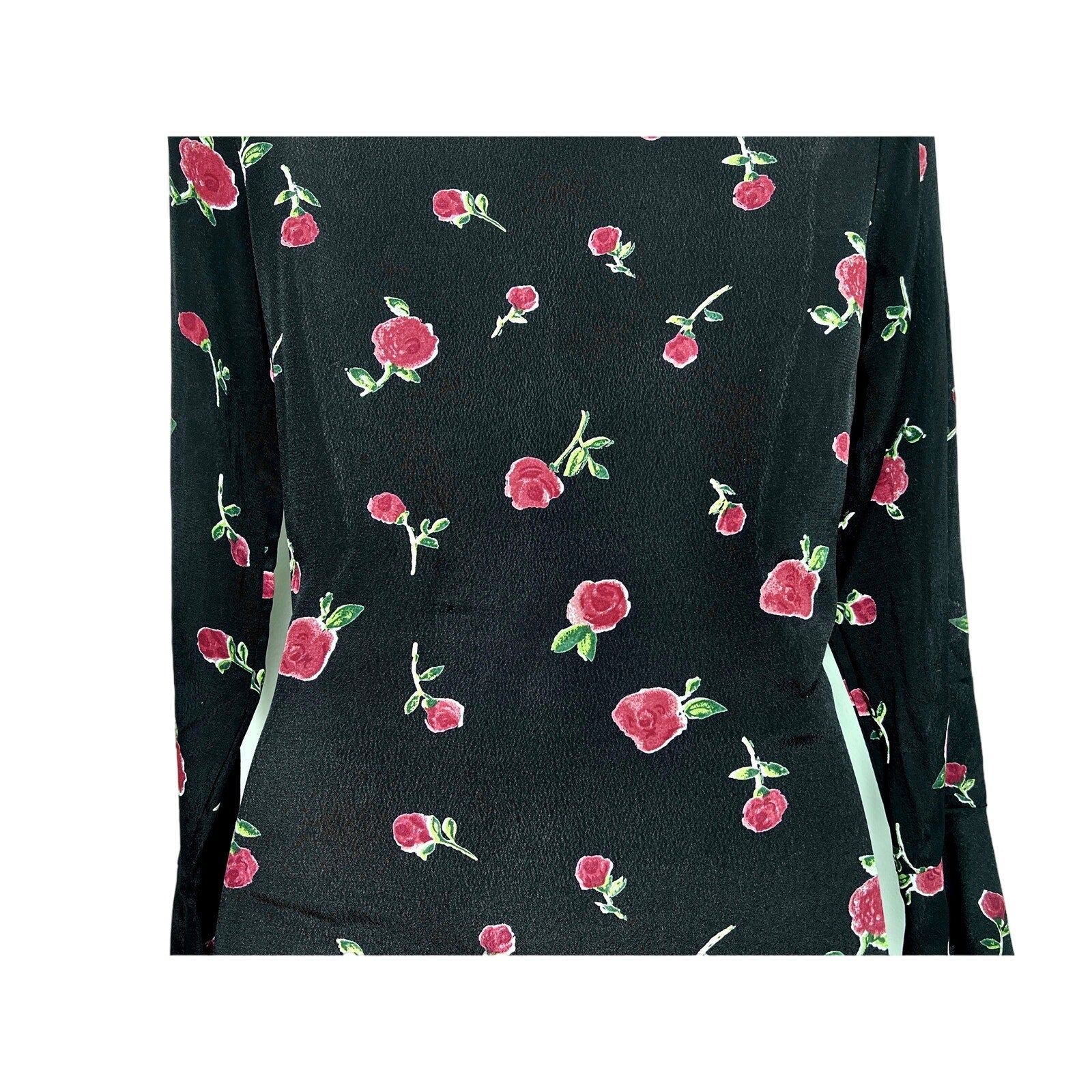 Gorgeous, pre-loved wrap dress made of 100% rayon. In very good condition with the exception of one tiny snag in the fabric at the back waistline. No hole, just a slight imperfection. Can be seen in photos abov, both close-up and wide view. This dress has so much life left, and is aboslutely perfect for summer.