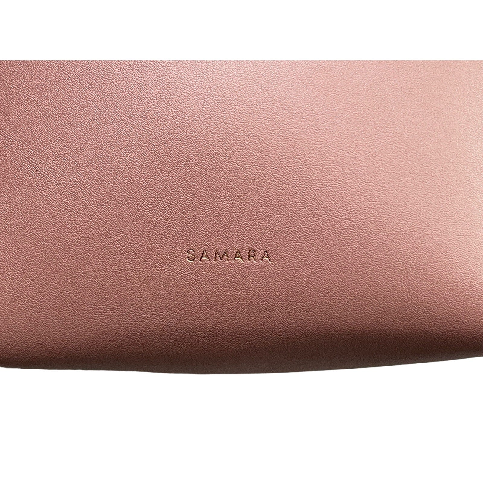 Unused, like new, without tags smooth leather crossbody bag x Samara Handbags in a gorgeous taupe color. As the lighting between photos may vary, it can occassionally appear between dusty rose/tan/taupe.  Strap is adjustable.  Drop measures 21.25" at the length you see it in photos.  ~3" wide at base.  Genuine leather.  Gold hardware, gold brand logo at base.  OP: $130