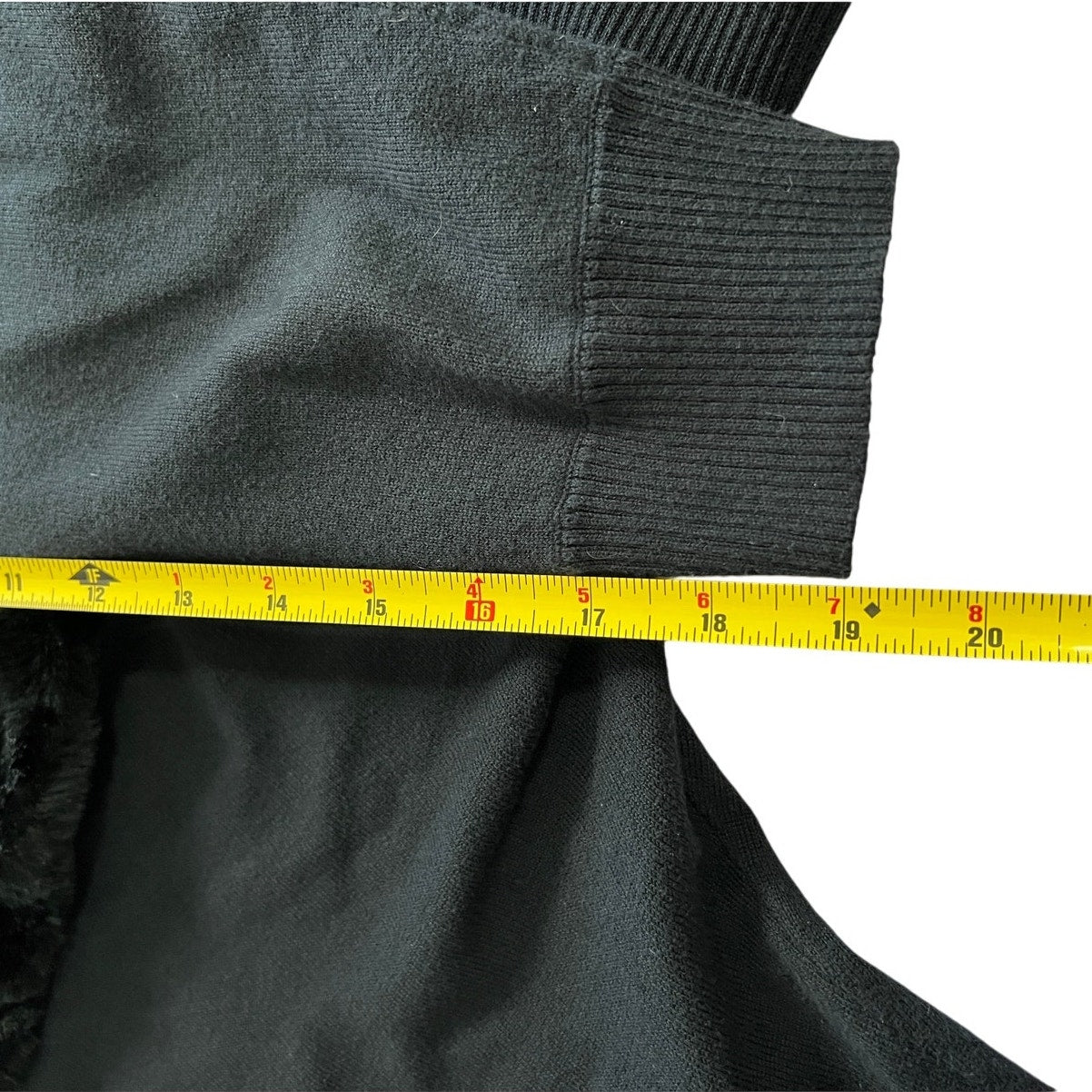 Gently pre-loved Axcess Liz Claiborned Fur Collar Cardigan XL in good condition.  Features fur-trimmed collar with button-front closure.  Please see measurements in photos in order of: shoulder, chest, sleeves, and length.